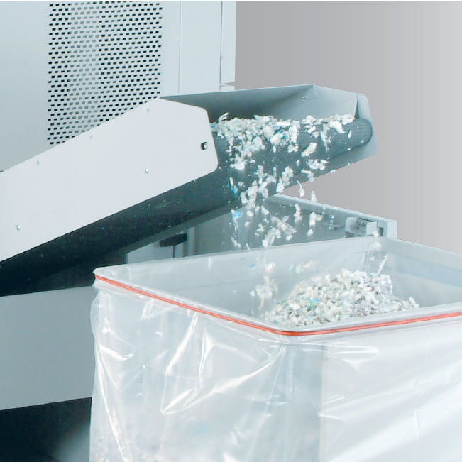 Konveyör bant sistemini kullanarak parçalayıcının çıktısı iki katına çıkarılabilir (dolu plastik torbanın çıkarılması gerekmez).